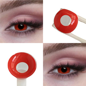 Unleash a captivating gaze with our Red Block full-coverage contact lenses. Designed for bold cosplay, stunning Halloween looks, and vibrant festival costumes, these solid red lenses deliver a fiery, dramatic intensity. Perfect for creating iconic characters or a daring fashion statement, they combine vivid color with all-day comfort. Step into any scene with confidence, making every look unforgettable with their powerful and precise impact.